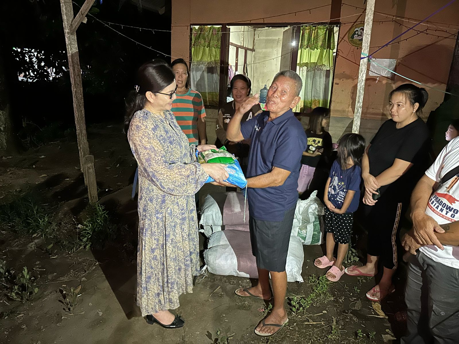 Senada Felly mengunjungi warga yang tertimpa bencana tanah longsor di kelurahan Rumoong bawah dan lokasi banjir Tumpaan sambil memberikan bantuan sembako dan lain lain..