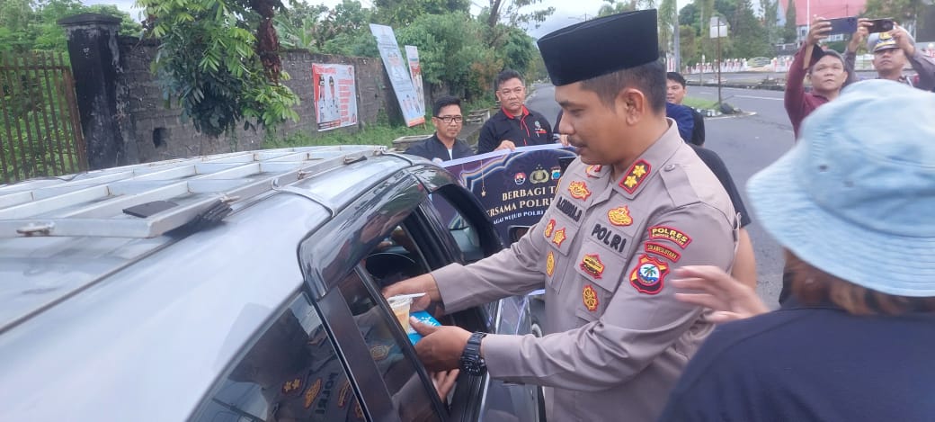 Kegiatan bagi-bagi takjil ini dilaksanakan secara serentak di seluruh Indonesia, dengan total jumlah makanan takjil sebanyak 2.350 dos. “Kita berharap di bulan Ramadhan ini, warga dapat menjalankan ibadah puasa dengan baik dan khusyuk. Mari, terus perkuat semangat toleransi, kebersamaan dan kekeluargaan,” tambah Kapolres.